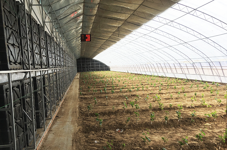 水蓄熱內(nèi)保溫裝配式日光溫室是由內(nèi)蒙古農(nóng)業(yè)大學(xué)與內(nèi)蒙古中天科技有限公司聯(lián)合研發(fā)完成,并已在東北、西北、華北等地區(qū)進行了大面積的示范推廣。該溫室集成了10多項國家專利技術(shù),實現(xiàn)了北方寒冷地區(qū)冬季不加熱正常生產(chǎn)果菜類蔬菜,對于推動設(shè)施蔬菜產(chǎn)業(yè)發(fā)展及帶動當(dāng)?shù)剞r(nóng)民增收致富有著非常重要的意義,該溫室具備以下特點: