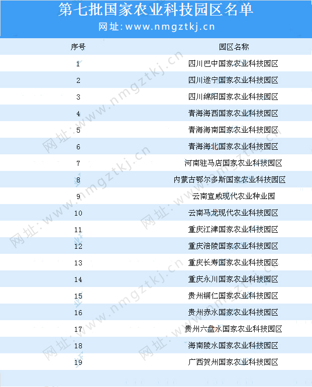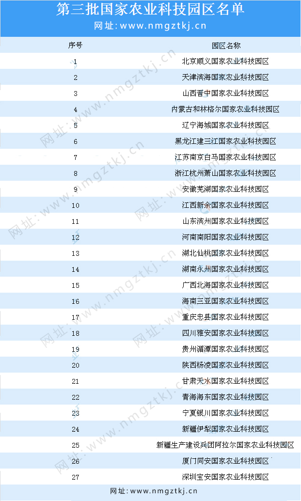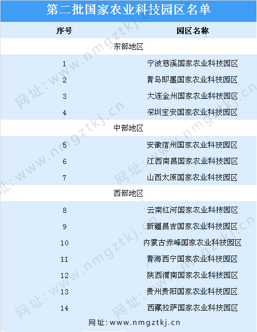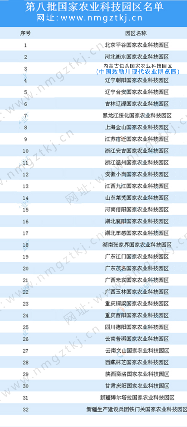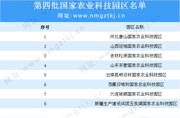 截止目前,我國已公布了8批國家農(nóng)業(yè)科技園區(qū)名單,園區(qū)累計達到200多個,以下是1-8批國家農(nóng)業(yè)科技園區(qū)名單匯總一覽: